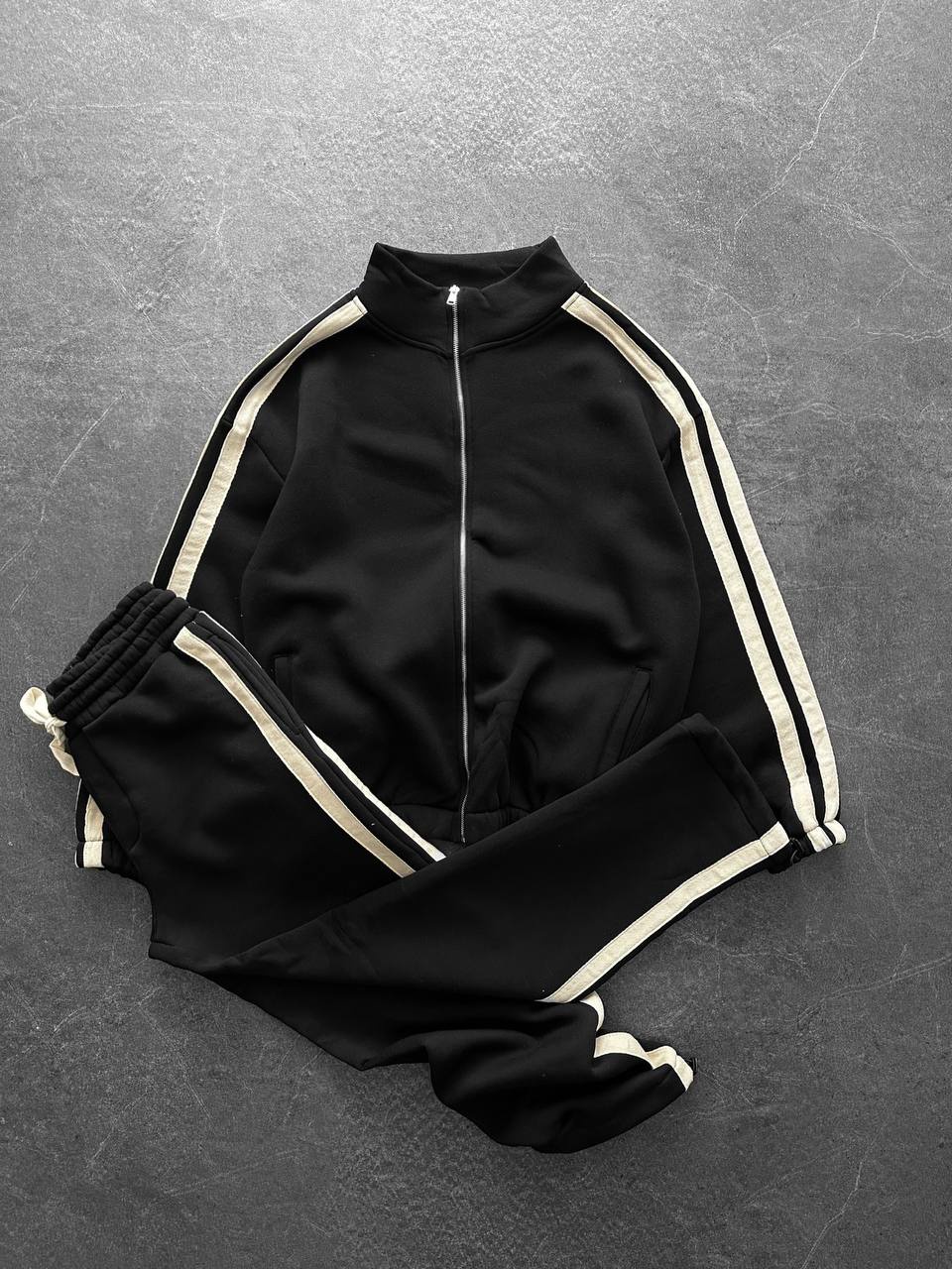 . تيشرت سادة مزود بخطين جانبيين + بنطلون بنفس اللون مزود بنفس التفاصيل